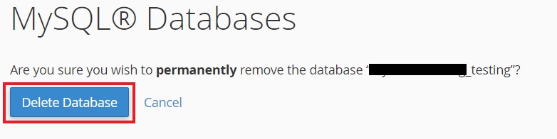 On the next screen, click the "Delete Database" to confirm that you wish to delete the database.