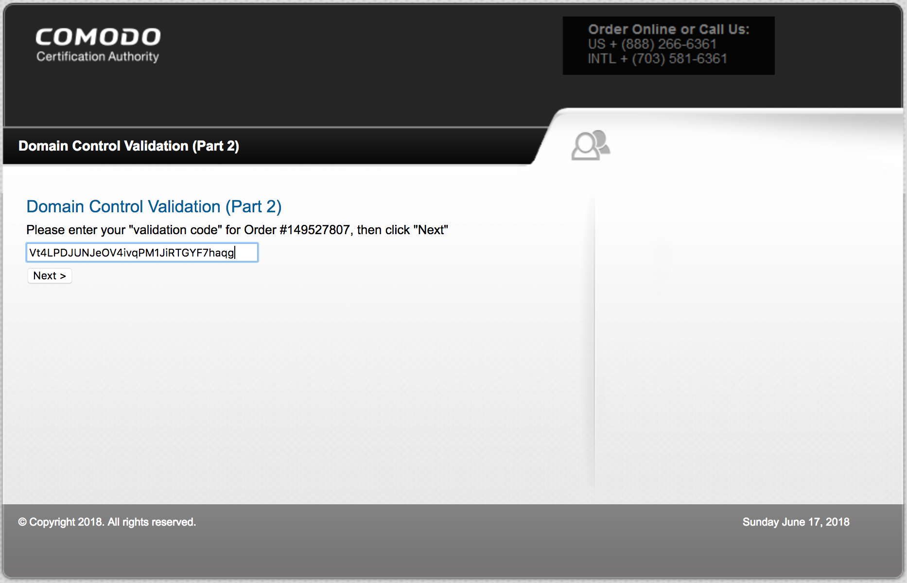 8. Click on the validation link and a new window will be open. Copy the hash/password inside the email and paste it on the validation window. Click Next to proceed.