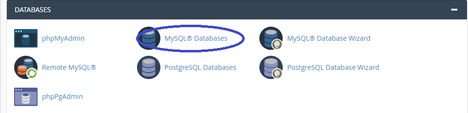 Step 1 : Login to your cPanel account to set up your database and database user. Scroll down for Databases section, then choose MySQL Databases as shown below :
