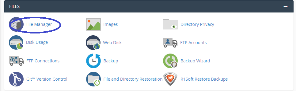 Step 1 : Go back to the main page in your cPanel account, and click File Manager under the Files panel to open the cPanel File Manager in a new window.
