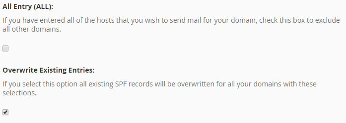 To overwrite all existing SPF records, select at the Overwrite Existing Entries.