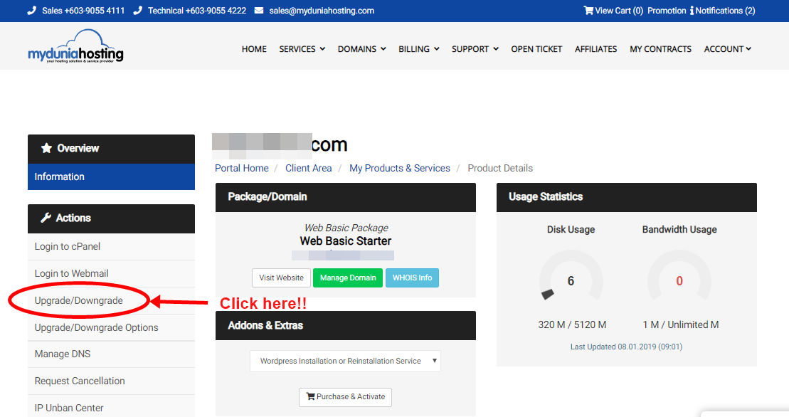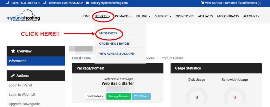 3. After login. You will be redirect into website client area and click at Services > My Service tab